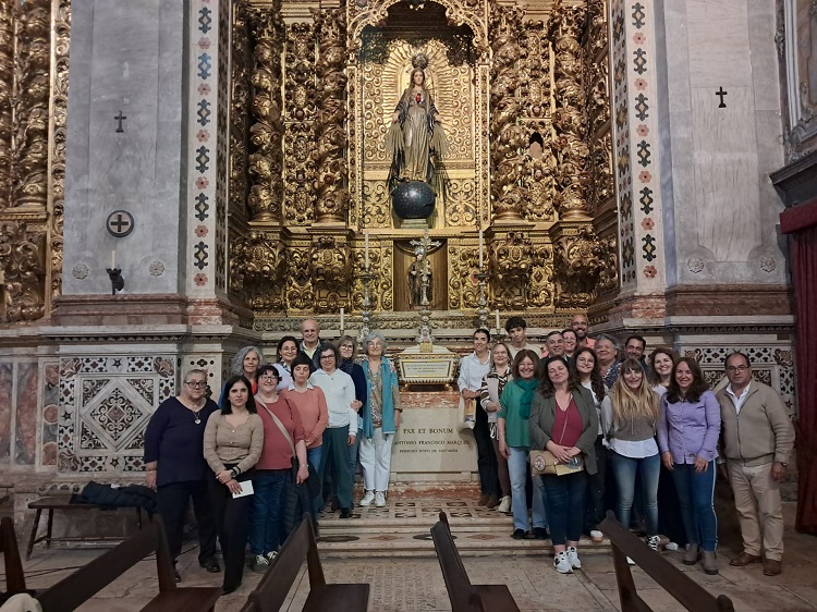 Um grupo de Mordomos das Festas em honra de São Frei Gil 2026 realizou uma visita cultural a Santarém, no passado dia 25, com o principal objetivo de conhecer o relicário que contém restos mortais de S. Frei Gil, exposto na magnífica Catedral. O Técnico/Guia municipal proporcionou-nos um importante périplo por vários monumentos da cidade, onde viveu e faleceu o Santo, que tanto representa para nós – Igrejas, Museu Diocesano, Maqueta do Convento dominicano onde viveu S. Frei Gil! Esperamos conseguir, na próxima exposição alusiva ao nosso feriado, usufruir dessas duas peças (relicário e maqueta). Sabe-se que a tampa da sua sepultura passou a fazer parte do espólio do Museu Arqueológico do Carmo, Lisboa (Capela Mor), após ter sido recuperada das ruínas do Convento, pelo que, apenas, poderemos usufruir do respetivo registo fotográfico!