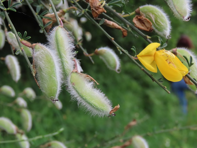 O nome “giesta” é uma designação comum atribuída a vários arbustos diferentes da família Fabaceae, conhecida pela família das leguminosas e que reúne plantas como a olaia, a alfarrobeira ou o tremoceiro. Na região de Vouzela, são conhecidas por giesta pelo menos cinco espécies, incluindo todas as do género Cytisus, a giesta-piorneira (Genista florida), e por vezes também os codeços, do género Adenocarpus, planta de que já falámos a propósito de Póvoa de Codeçais. Destas espécies, a mais frequente é a giesta-amarela (Cytisus striatus), cujo crescimento é muito favorecido pelos incêndios. Todas estas plantas partilham algumas semelhanças morfológicas, como a ausência de espinhos, os ramos longos e direitos, as folhas relativamente pequenas e flores amarelas; apenas uma destas giestas, a giesta-branca (Cytisus multiflorus), possui flores (como se adivinha) brancas. O período de floração é variável: as espécies de Cytisus florescem no início da primavera, enquanto a giesta-piorneira e os codeços florescem no verão. No entanto, todas produzem frutos em forma de vagem que, quando maduras, abrem e libertam as sementes.